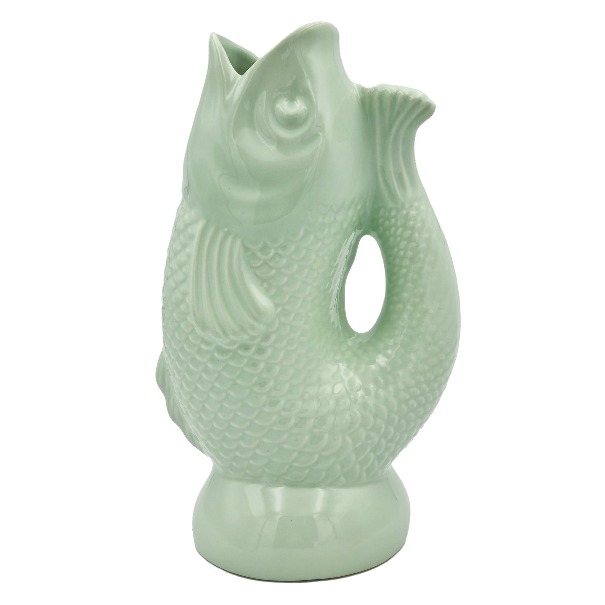 En keramikkanna i form av en fisk med en härlig färg i mint som absolut fångar allas blick.