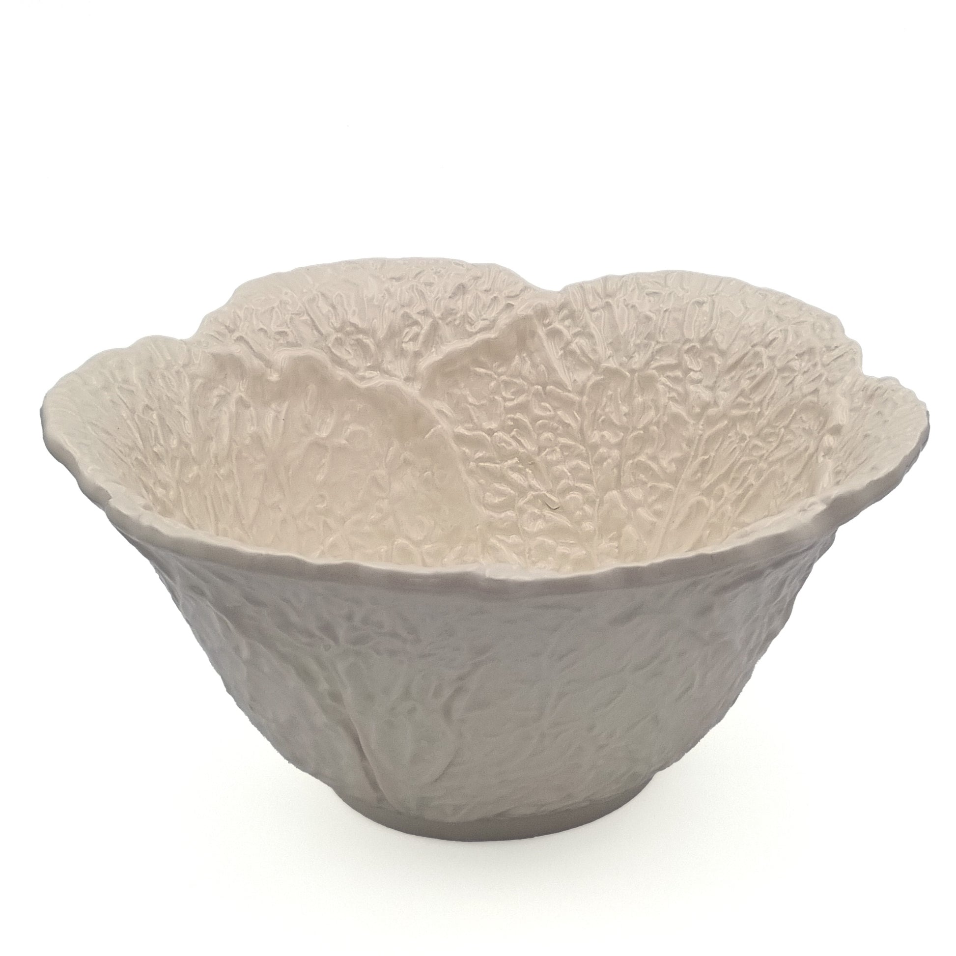 Keramisk salladsskål i form av ett naturtroget kålblad, med inspiration från den kända portugisiska keramikern Bordallo Pinheiros cabbage serie.