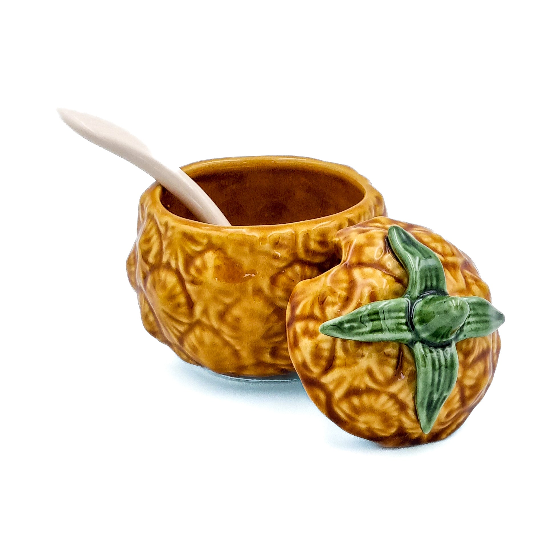 Sött sockerskål i naturtrogen stil i form av en ananas. Användningsområdena är många, till marmelad, chutney mm.