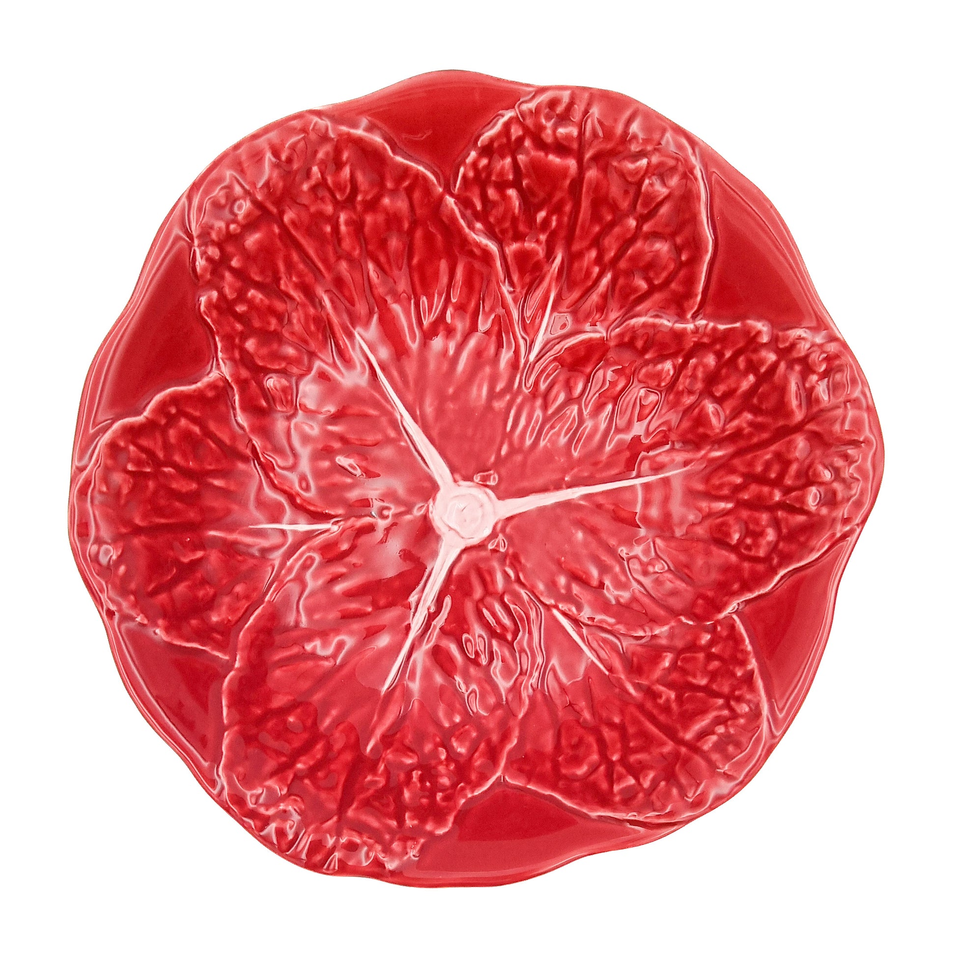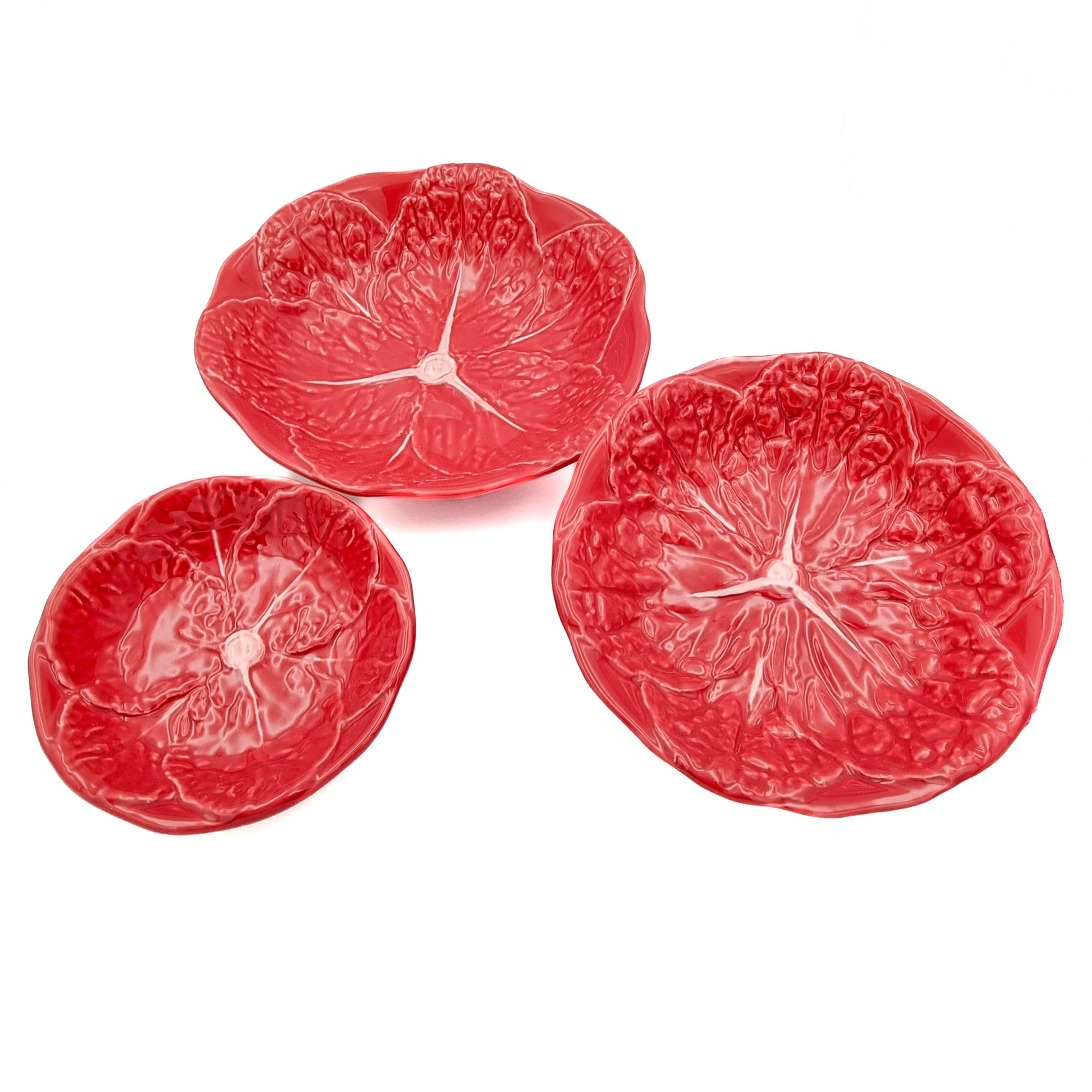 En uppläggningsskål i form av ett kålblad i härlig hallonfärg.