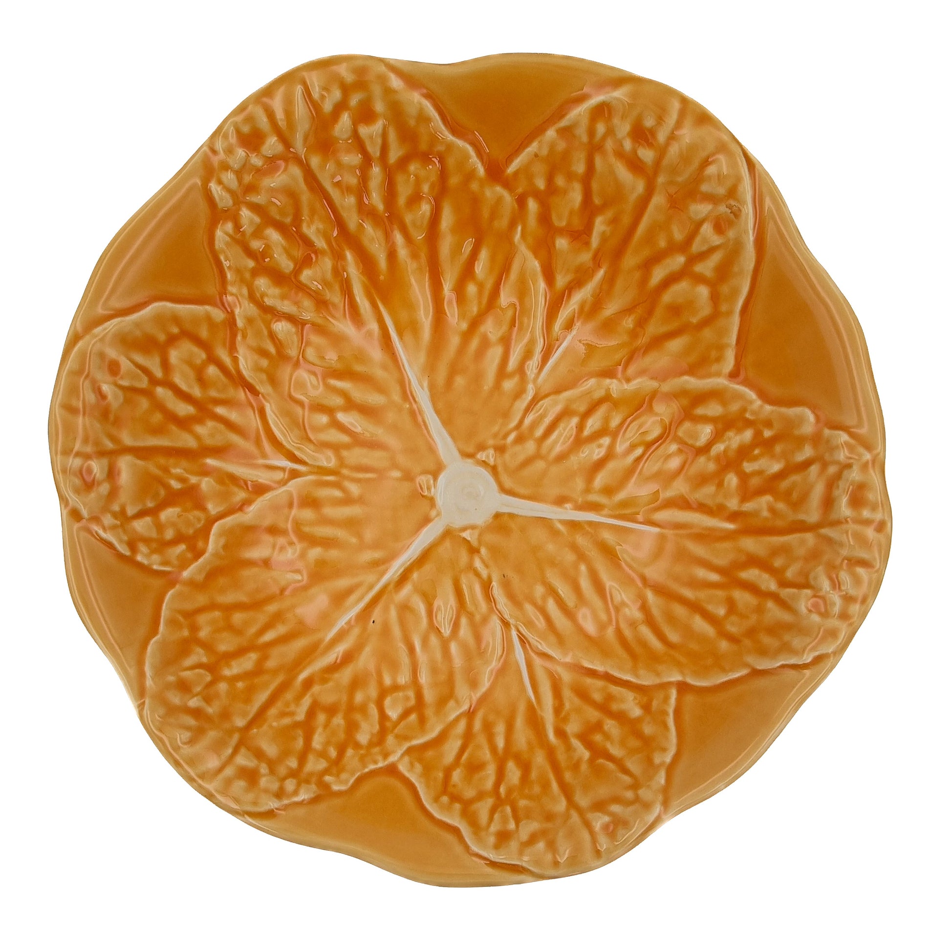 En uppläggningsskål i form av ett kålblad i färgglad orange färg.