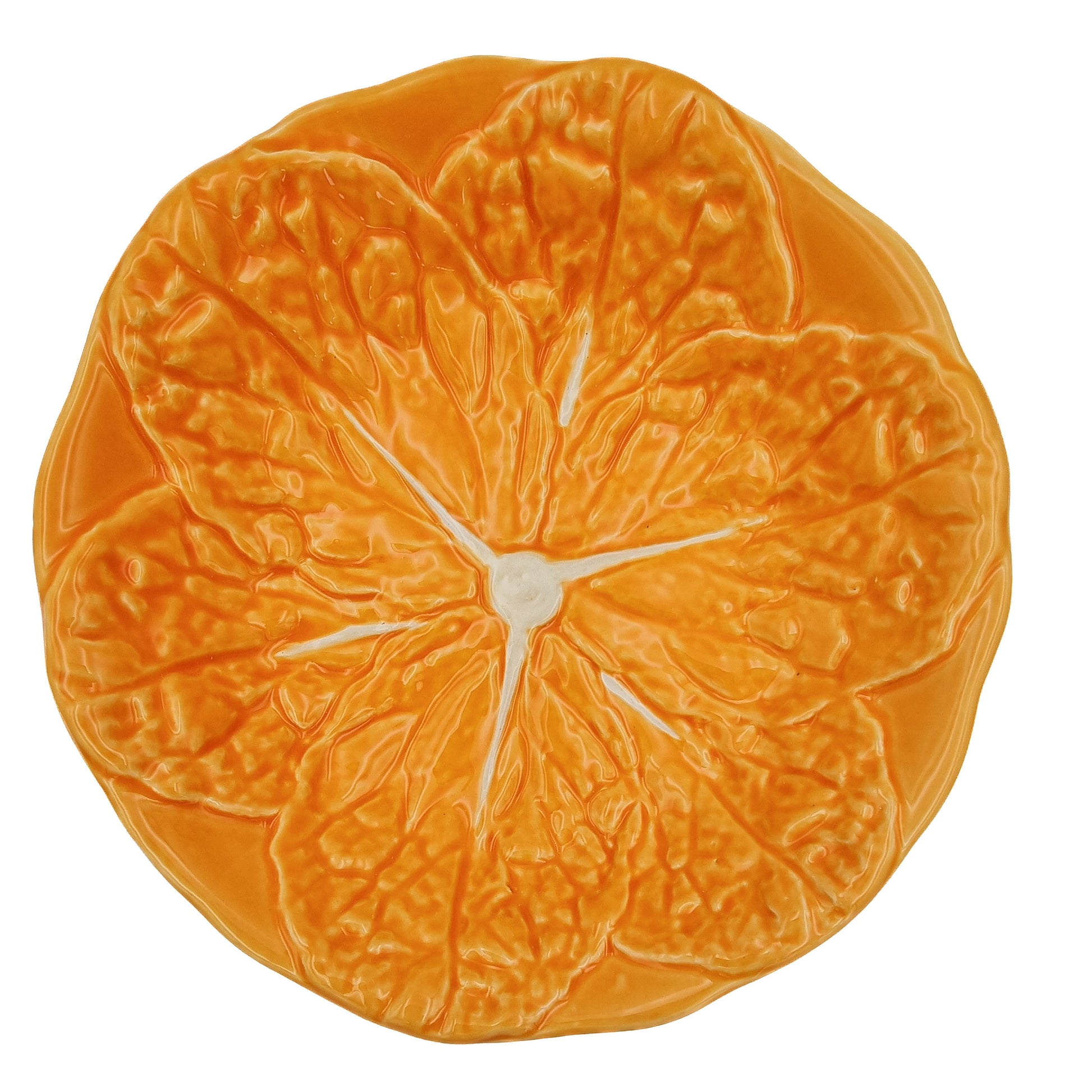 En uppläggningsskål i form av ett kålblad i färgglad orange färg.