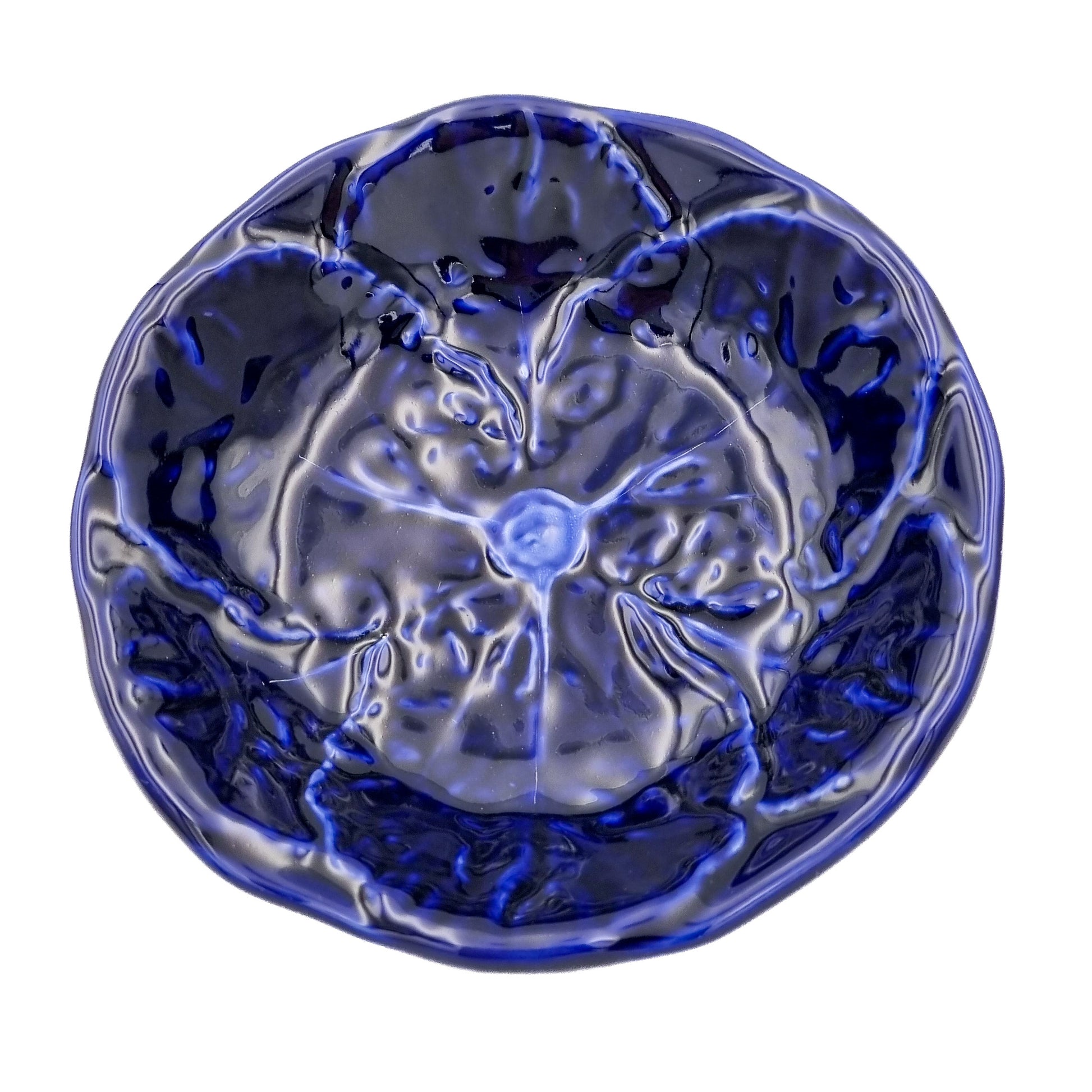 En uppläggningsskål i form av ett kålblad i färgstark kobolt. Denna skål har många användningsområden, till en sallad, frukost yogurt mm.